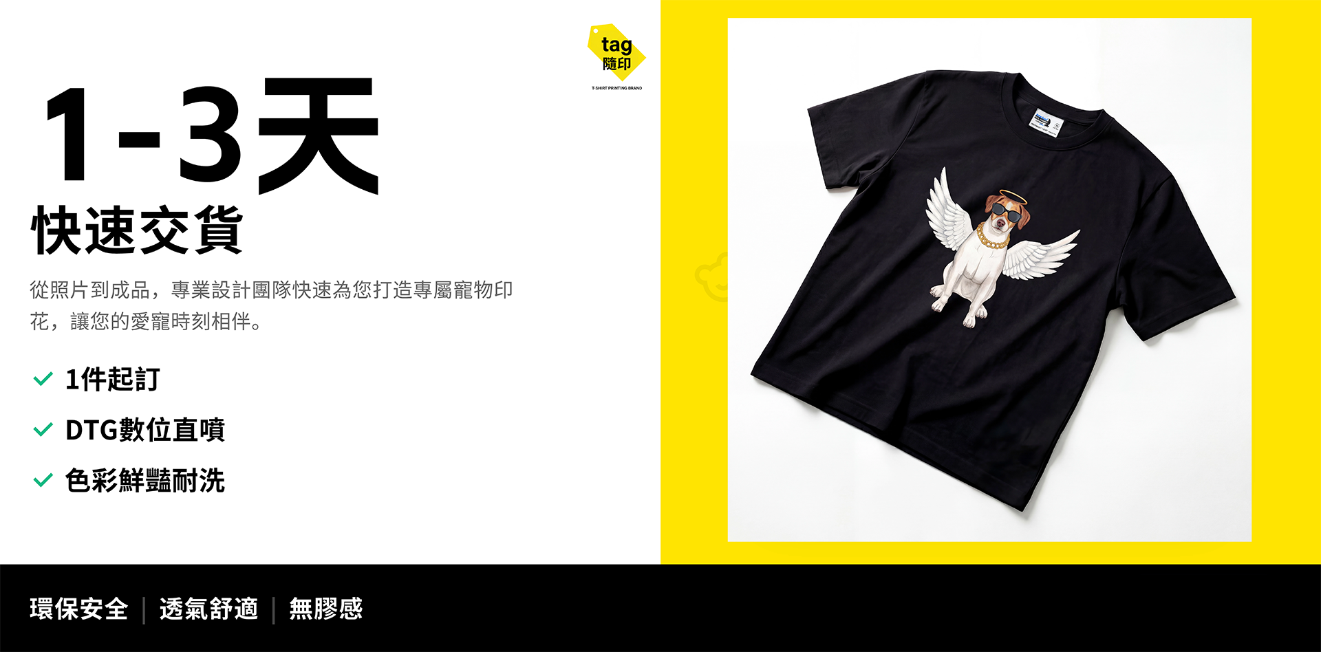DTG數位直噴優勢在於可1件起印/無須開版/小量快速交貨/圖像鮮艷精細,